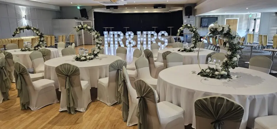 Feel free to discuss your requirements, and if you are looking for a decor package, light up letters, balloons, chair/table dressings, we have contacts who will be able to arrange at very reasonable prices.
